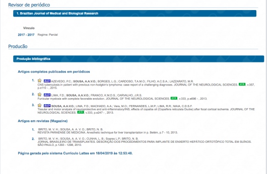 Tissular and motor analysis of neuroprotective and anti-inflammatory/INS; effects of copaiba oil (Copaifera reticulata Ducke) after focal cortical ischemia. (JOURNAL OF THE NEUROLOGICAL SCIENCES. Fator de Impacto(2016 JCR): 2,2950, v.333, p.e247 - , 2013)